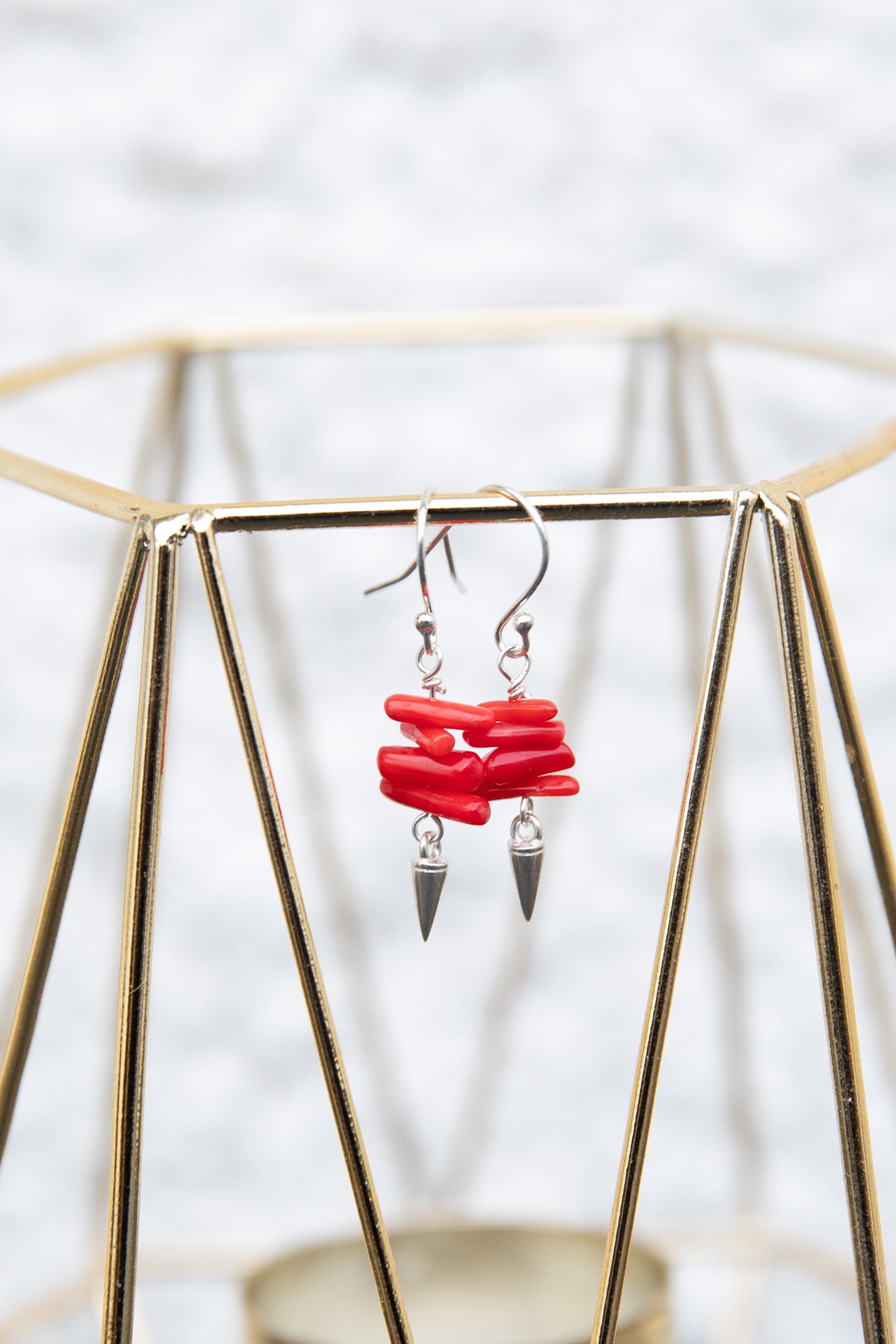 Eyrnalokkar gerðir úr 925 sterling silfri og kóral.