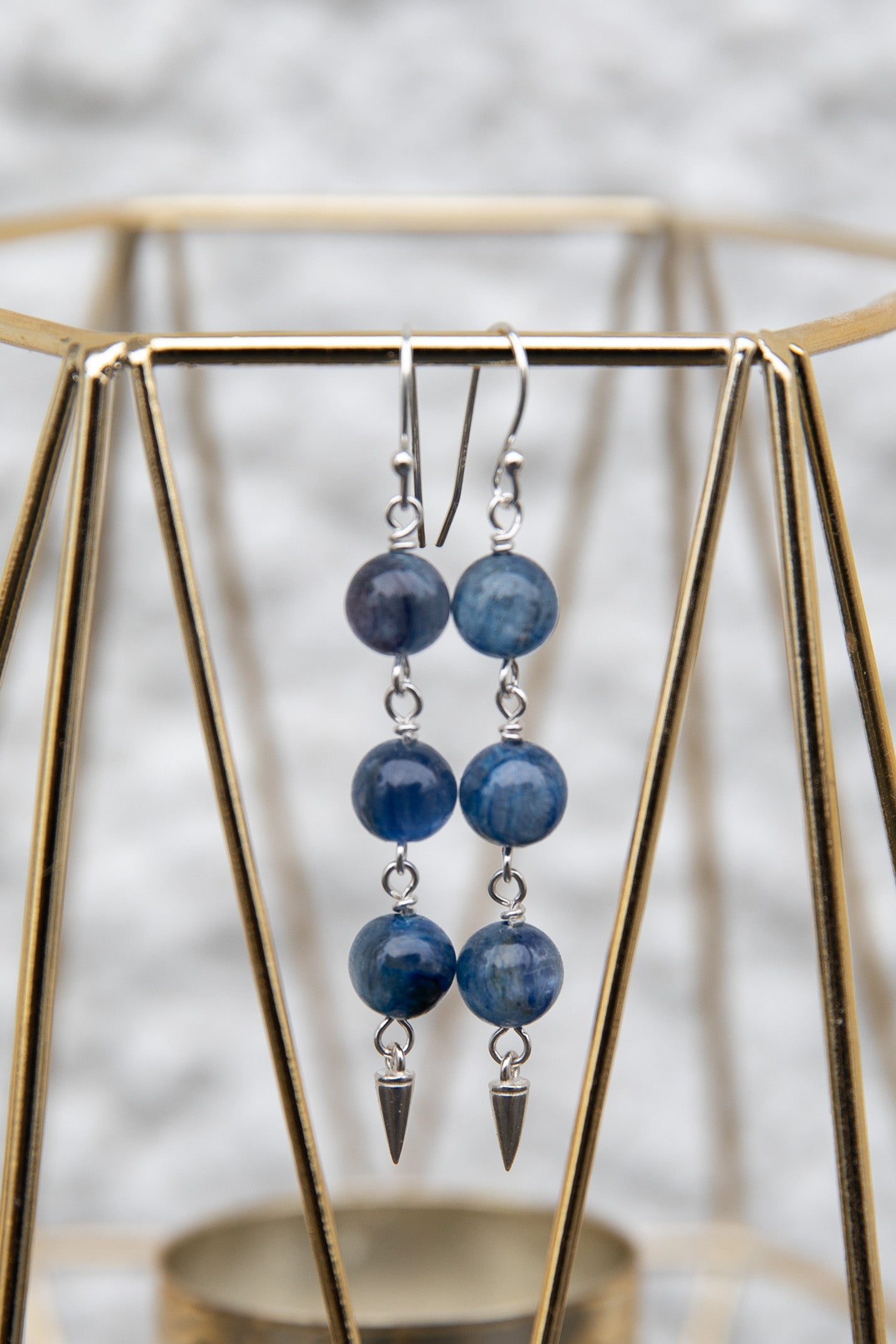 Eyrnalokkar gerðir úr 925 sterling silfri og slípuðum Kyanite stein.